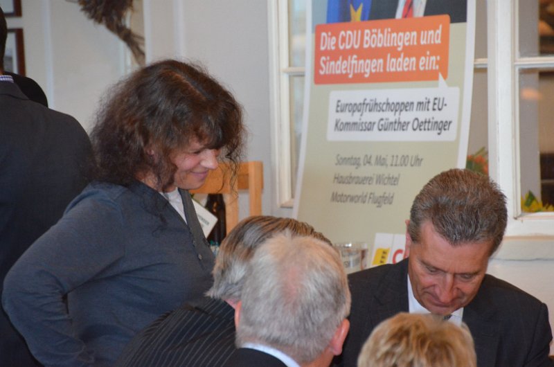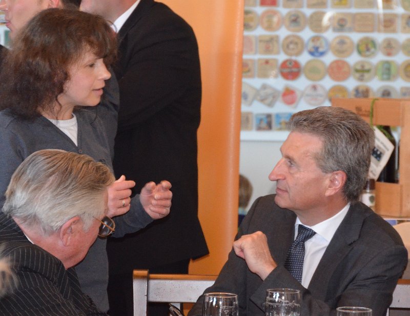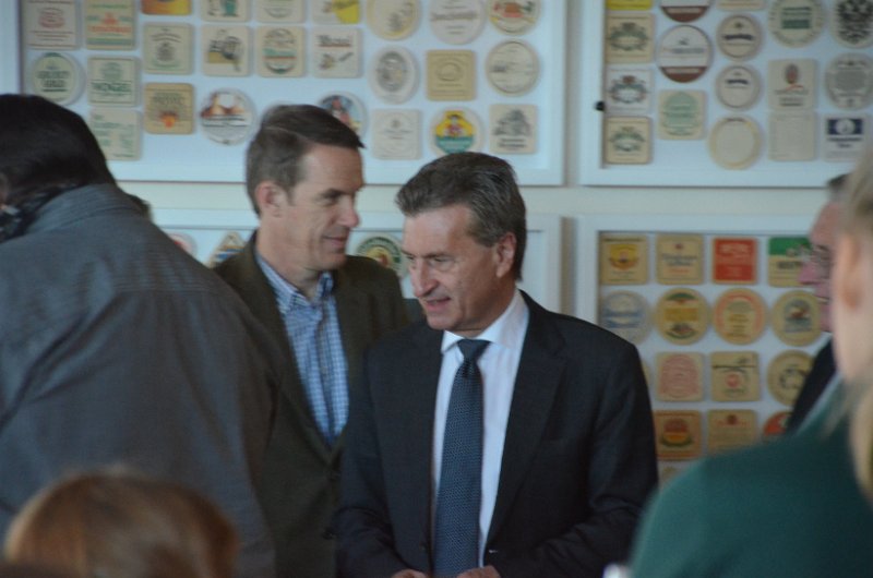 Günther Oettinger am 4.5.2014 im "Wichtel" (Hausbrauerei in MotorWorld, ehemals Meilenwerk) auf dem Flugfeld , Böblingen / Sindelfingen